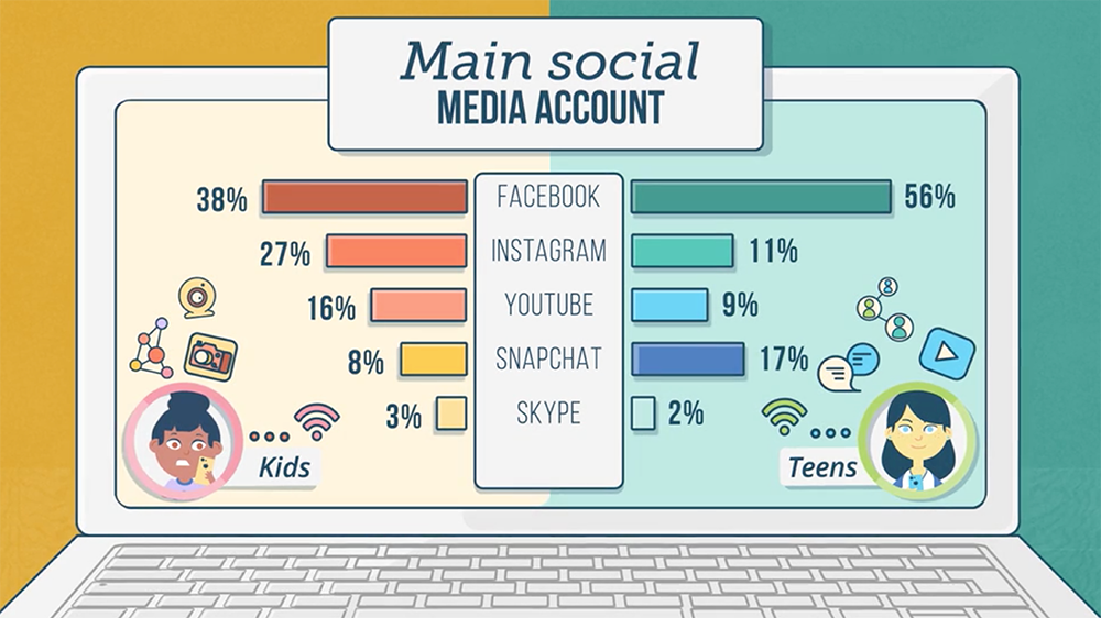 Young & Social is a short animation which sets out current research findings on young people's use of social media including the main social media used, privacy settings, the information they put on their main social media and what they like and dislike about social media. BRAVE animated the piece with an eye to making the information fun to watch and easy to absorb in presenting it through custom designed characters and environments.